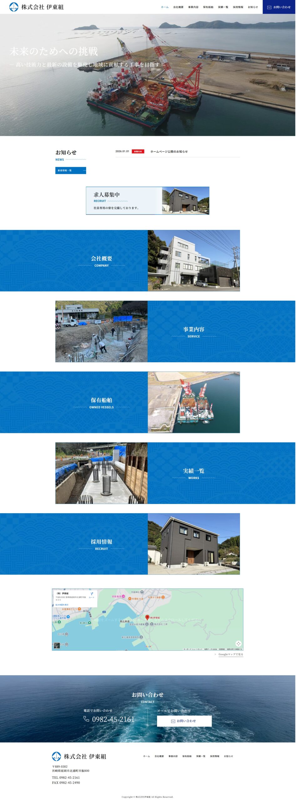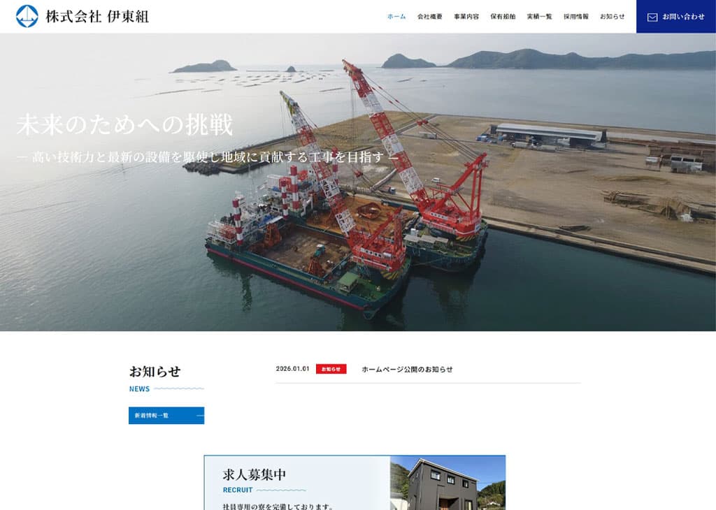 延岡市北浦町で建設業、船舶事業をされている伊東組様のホームページ作成事例の紹介です。